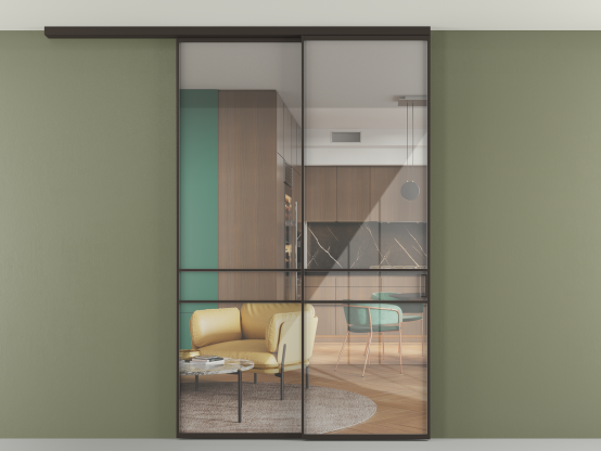 Алюминиевые перегородки имеют единый профиль с алюминиевыми дверьми и легко сочетаются в одном пространстве, не перегружая его. Также их можно комбинировать в интерьере с полотнами из нашего стандартного ассортимента. Помимо этого, система алюминиевых перегородок и дверей координируется со стеновыми панелями Волховец.