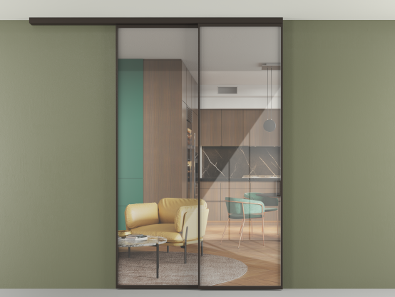 Алюминиевые перегородки имеют единый профиль с алюминиевыми дверьми и легко сочетаются в одном пространстве, не перегружая его. Также их можно комбинировать в интерьере с полотнами из нашего стандартного ассортимента. Помимо этого, система алюминиевых перегородок и дверей координируется со стеновыми панелями Волховец.