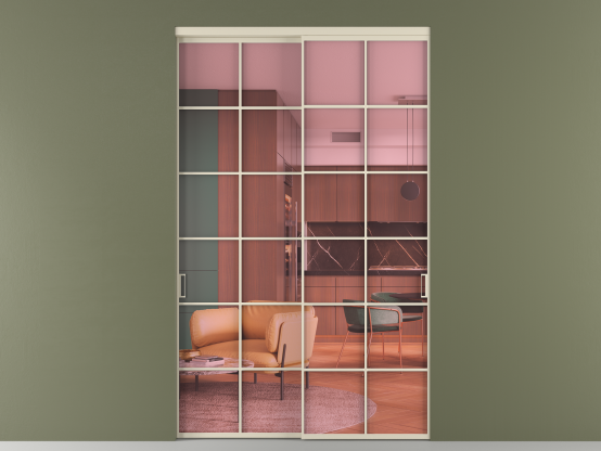 Во всех алюминиевых перегородках, независимо от типа установки, используется компланарный раздвижной механизм, благодаря которому декоративная крышка и полотно находятся в одной плоскости.