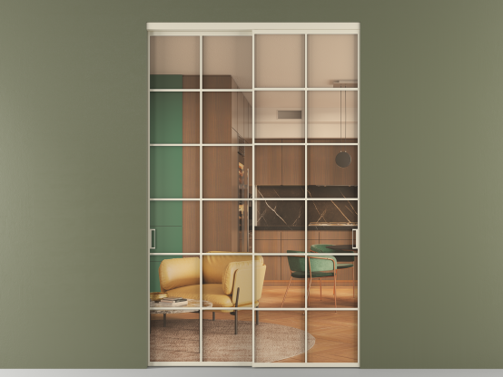 Алюминиевые перегородки имеют единый профиль с алюминиевыми дверьми и легко сочетаются в одном пространстве, не перегружая его. Также их можно комбинировать в интерьере с полотнами из нашего стандартного ассортимента. Помимо этого, система алюминиевых перегородок и дверей координируется со стеновыми панелями Волховец.