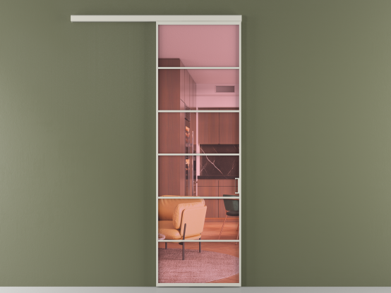 Во всех алюминиевых перегородках, независимо от типа установки, используется компланарный раздвижной механизм, благодаря которому декоративная крышка и полотно находятся в одной плоскости.