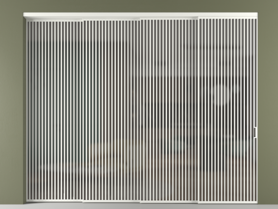 Дополнительно на раздвижную двустворчатую перегородку вдоль стены и четырёхстворчатую перегородку внутри проёма с двумя неподвижным полотнами можно установить механизм синхронного открывания — при открывании одной створки, вторая открывается автоматически.