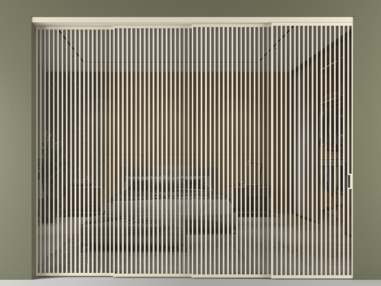 Во всех алюминиевых перегородках, независимо от типа установки, используется компланарный раздвижной механизм, благодаря которому декоративная крышка и полотно находятся в одной плоскости.
