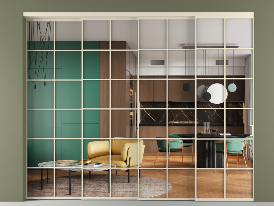 Перегородка Формато внутри проёма 4 створки с синхронным механизмом