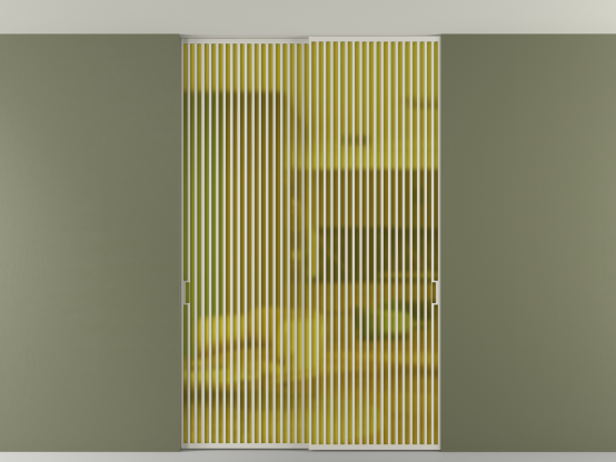 Дополнительно на раздвижную двустворчатую перегородку вдоль стены и четырёхстворчатую перегородку внутри проёма с двумя неподвижным полотнами можно установить механизм синхронного открывания — при открывании одной створки, вторая открывается автоматически.