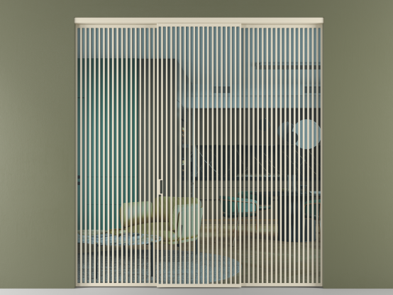 Дополнительно на раздвижную двустворчатую перегородку вдоль стены и четырёхстворчатую перегородку внутри проёма с двумя неподвижным полотнами можно установить механизм синхронного открывания — при открывании одной створки, вторая открывается автоматически.