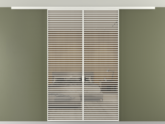 Дополнительно на раздвижную двустворчатую перегородку вдоль стены и четырёхстворчатую перегородку внутри проёма с двумя неподвижным полотнами можно установить механизм синхронного открывания — при открывании одной створки, вторая открывается автоматически.