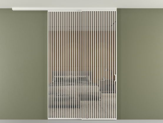 Во всех алюминиевых перегородках, независимо от типа установки, используется компланарный раздвижной механизм, благодаря которому декоративная крышка и полотно находятся в одной плоскости.