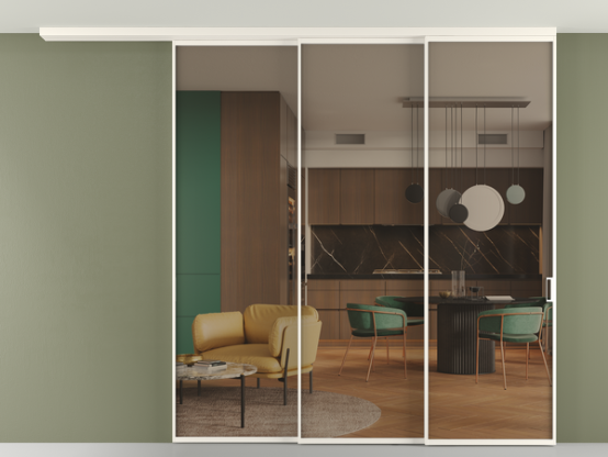 Перегородка Формато вдоль стены на потолок 3 створки с синхронным механизмом
