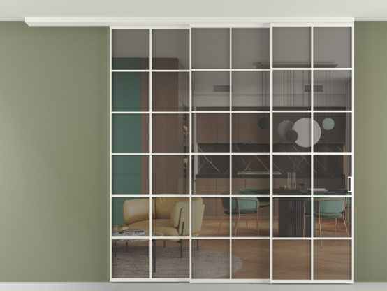 Алюминиевые перегородки имеют единый профиль с алюминиевыми дверьми и легко сочетаются в одном пространстве, не перегружая его. Также их можно комбинировать в интерьере с полотнами из нашего стандартного ассортимента. Помимо этого, система алюминиевых перегородок и дверей координируется со стеновыми панелями Волховец.