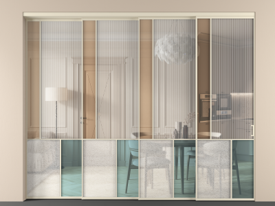 Перегородка Mosaic внутри проёма 4 створки с синхронным механизмом