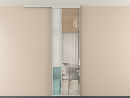 Во всех алюминиевых перегородках, независимо от типа установки, используется компланарный раздвижной механизм, благодаря которому декоративная крышка и полотно находятся в одной плоскости.
