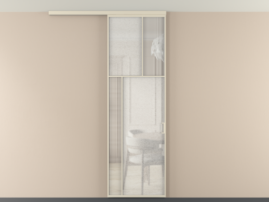 АЛПР 041.22. Алюминий бежево-серый Рифлёное стекло "Дюна" + Фактурное стекло "Лёд"