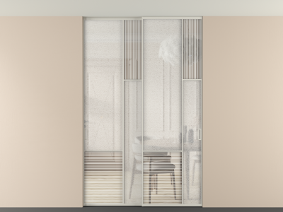 Во всех алюминиевых перегородках, независимо от типа установки, используется компланарный раздвижной механизм, благодаря которому декоративная крышка и полотно находятся в одной плоскости.