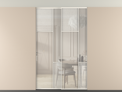 Во всех алюминиевых перегородках, независимо от типа установки, используется компланарный раздвижной механизм, благодаря которому декоративная крышка и полотно находятся в одной плоскости.