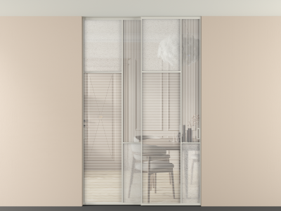 Во всех алюминиевых перегородках, независимо от типа установки, используется компланарный раздвижной механизм, благодаря которому декоративная крышка и полотно находятся в одной плоскости.