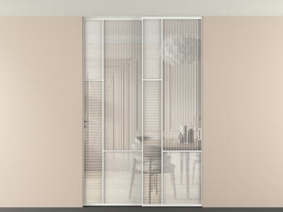 Во всех алюминиевых перегородках, независимо от типа установки, используется компланарный раздвижной механизм, благодаря которому декоративная крышка и полотно находятся в одной плоскости.
