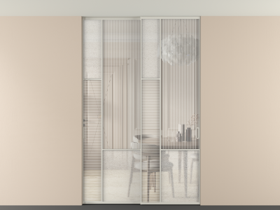 Во всех алюминиевых перегородках, независимо от типа установки, используется компланарный раздвижной механизм, благодаря которому декоративная крышка и полотно находятся в одной плоскости.