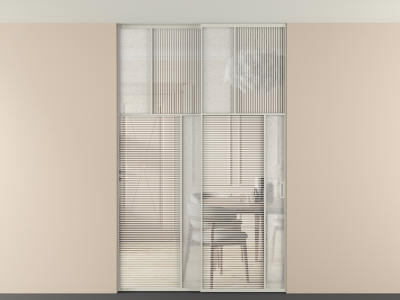 Во всех алюминиевых перегородках, независимо от типа установки, используется компланарный раздвижной механизм, благодаря которому декоративная крышка и полотно находятся в одной плоскости.