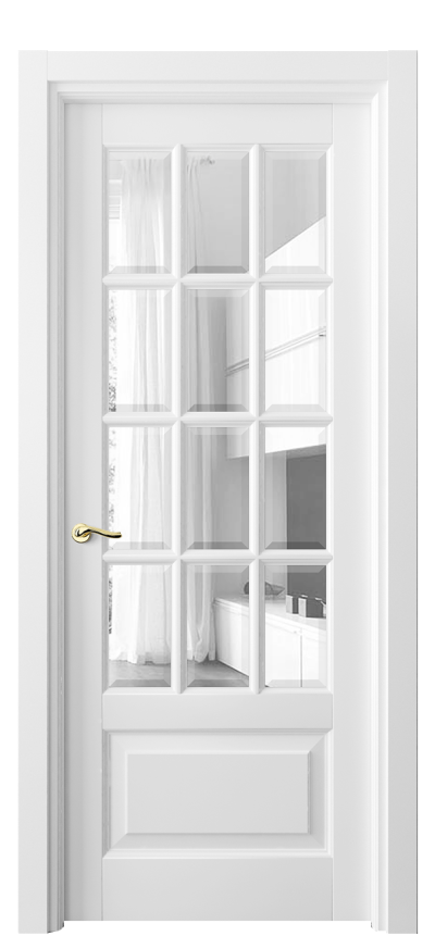 Лигнум 0728. Матовый белоснежный Прозрачное стекло с фацетом