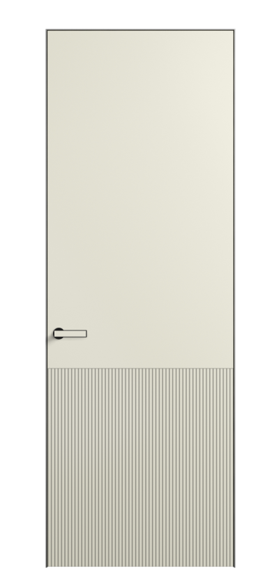 Это полотна с рельефной фрезеровкой. Этот прием делает интерьер объемным, тактильным, вносит интересную текстуру и создает современный образ. Волнистый рельеф может быть выполнен по ламелям из массива дуба в древесных матовых отделках, либо исполнен по натуральному и экологически безопасному материалу — ХДФ, покрытому гладкой эмалью актуальных оттенков.