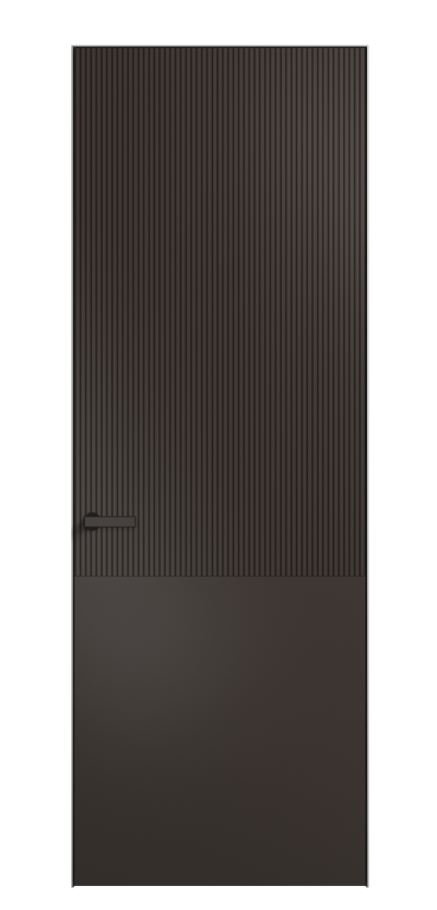 Это полотна с рельефной фрезеровкой. Этот прием делает интерьер объемным, тактильным, вносит интересную текстуру и создает современный образ. Волнистый рельеф может быть выполнен по ламелям из массива дуба в древесных матовых отделках, либо исполнен по натуральному и экологически безопасному материалу — ХДФ, покрытому гладкой эмалью актуальных оттенков.