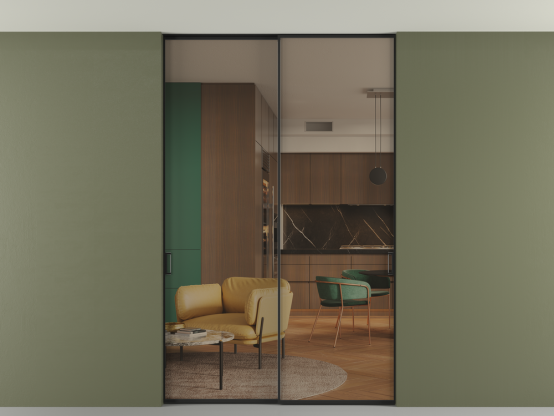 Алюминиевые перегородки имеют единый профиль с алюминиевыми дверьми и легко сочетаются в одном пространстве, не перегружая его. Также их можно комбинировать в интерьере с полотнами из нашего стандартного ассортимента. Помимо этого, система алюминиевых перегородок и дверей координируется со стеновыми панелями Волховец.